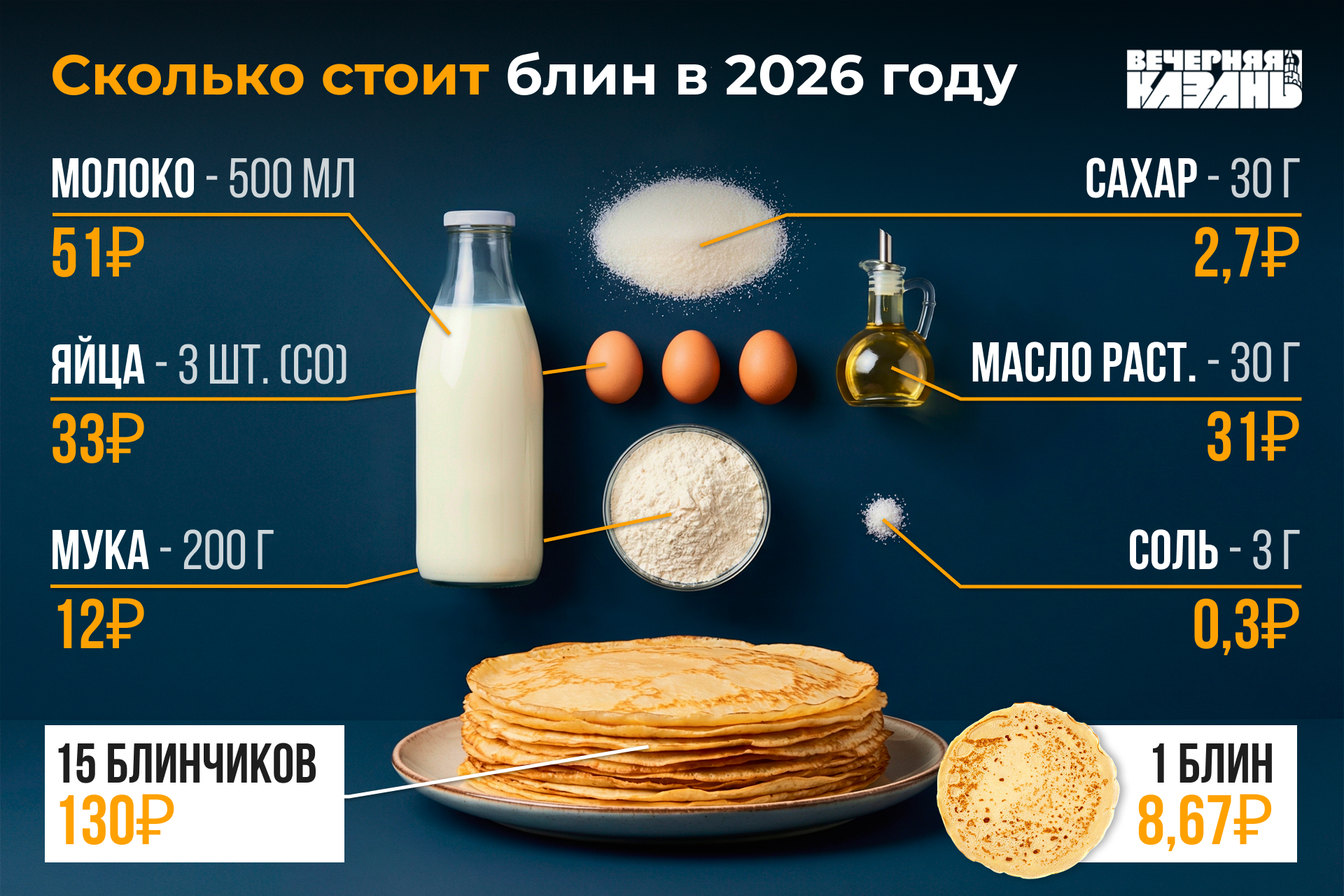 Очень кстати, что под конец 2025 года в мэрии города огласили, сколько получают люди в Казани. Подробнее об этом можно почитать по ссылке, а мы сейчас будем переводить средний заработок в блины.