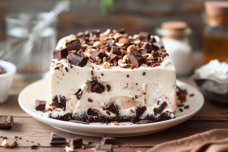 Перед подачей аккуратно извлеките торт, слегка прогрев форму снаружи. Украсьте посыпкой, орехами или шоколадом. По желанию добавляйте фрукты — каждый раз вкус будет новым и интересным.